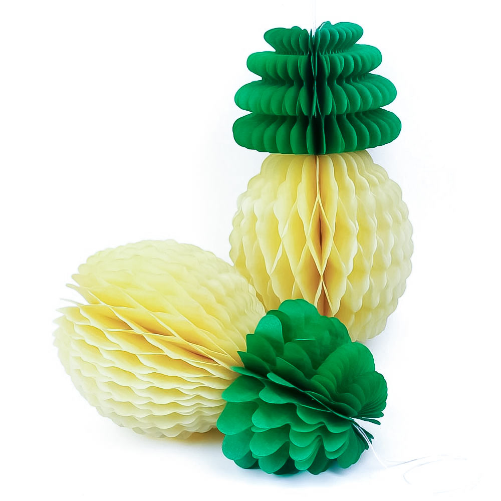 Бумажное украшение "Ананас" 30х18 см — сочный и праздничный элемент для оформления стола, фотозон, витрин и интерьера. Поставляется в сложенном виде, легко раскрывается в пышную объёмную форму.