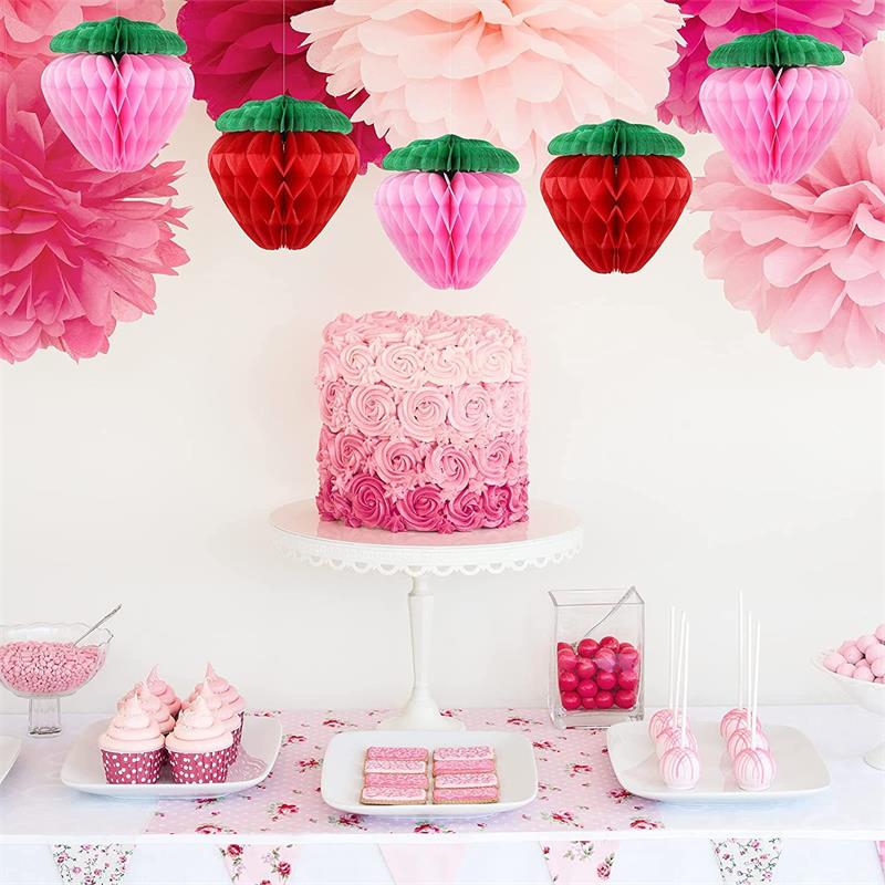 Бумажное украшение "Клубника" 20х20 см, розовый