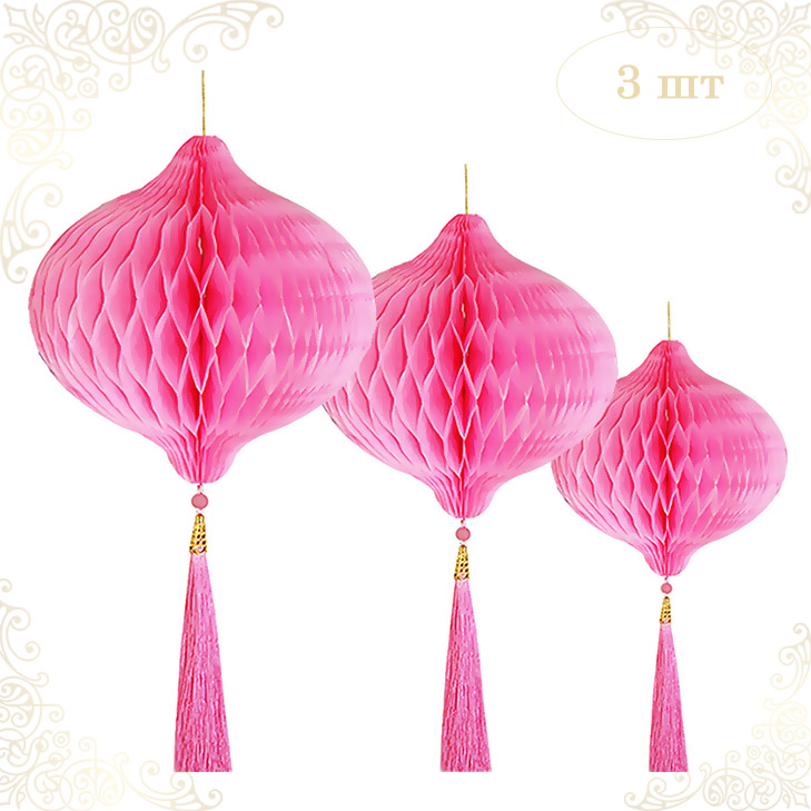 НАБОР бумажное украшение Шары-соты с кисточкой, розовый - 3шт: