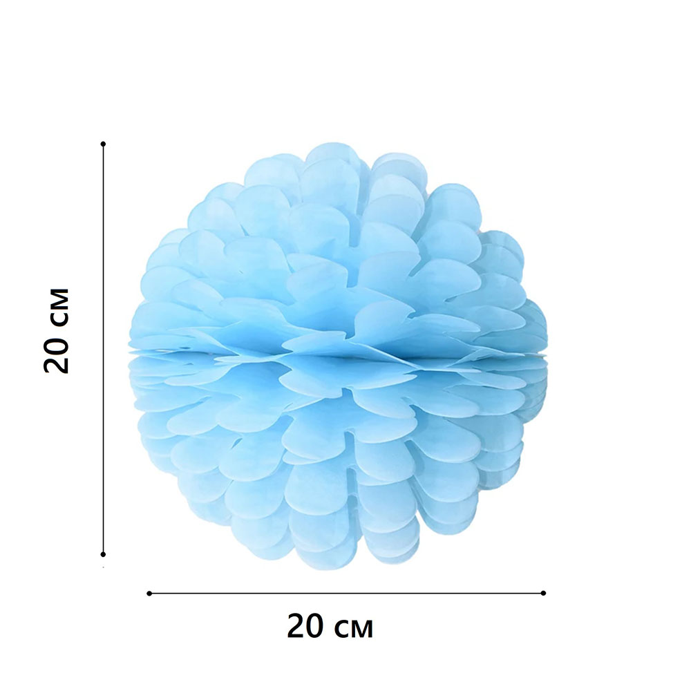 Бумажное украшение Цветочный шар-соты 20 см, голубой