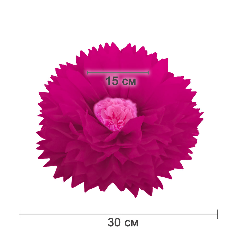 Бумажный цветок 30 см малиновый+розовый