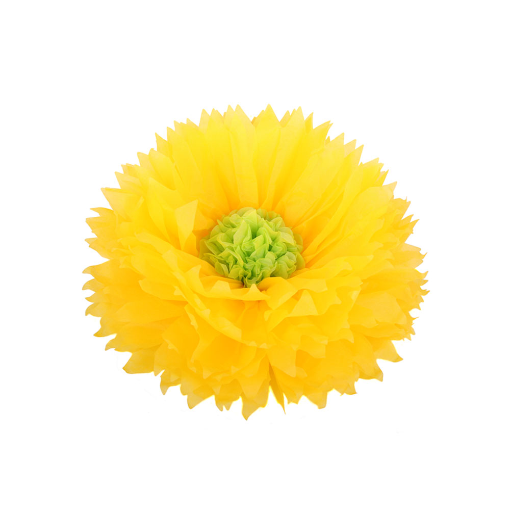 Бумажный цветок 30 см ярко-желтый+салатовый