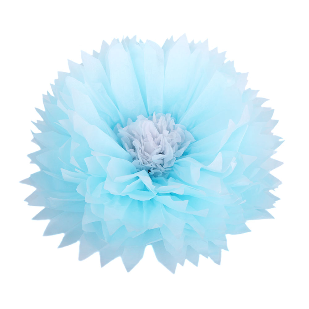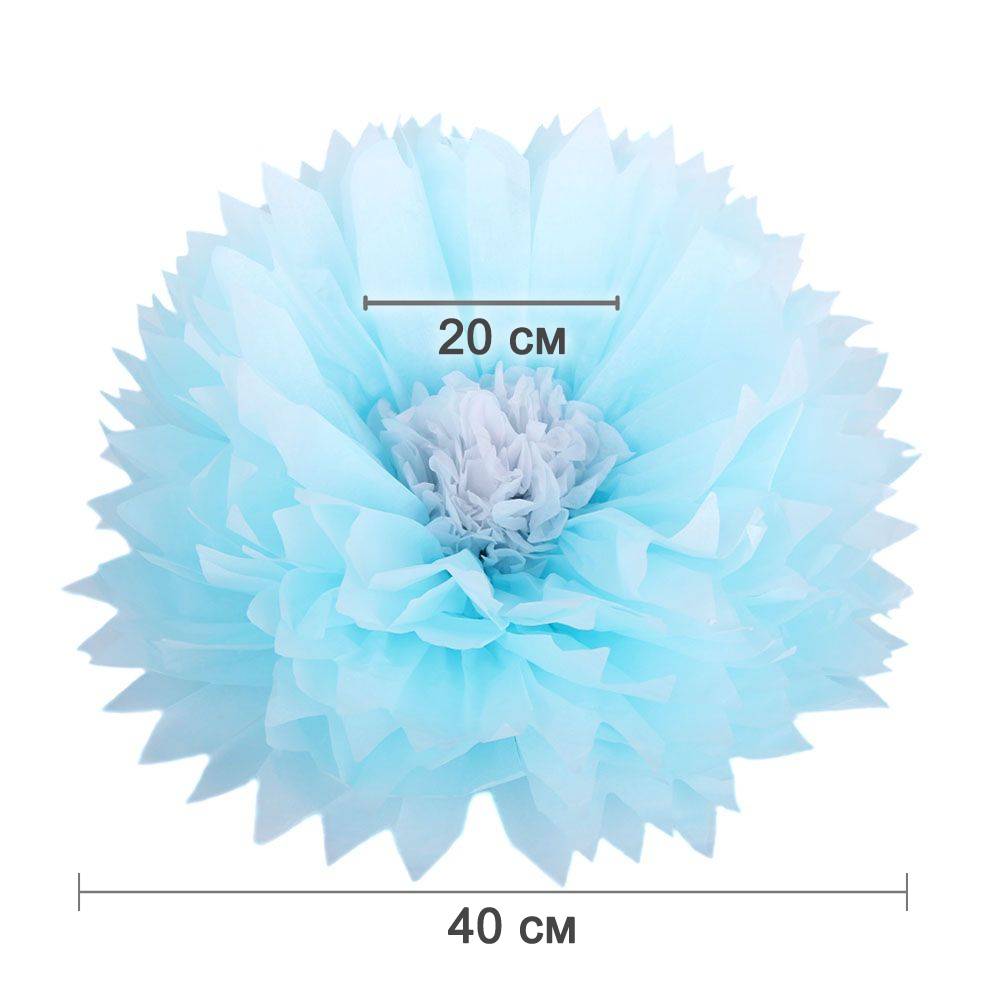 Бумажный цветок 40 см голубой+белый