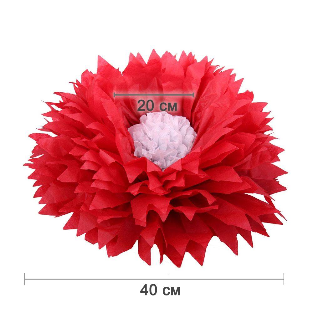Бумажный цветок 40 см красный+белый
