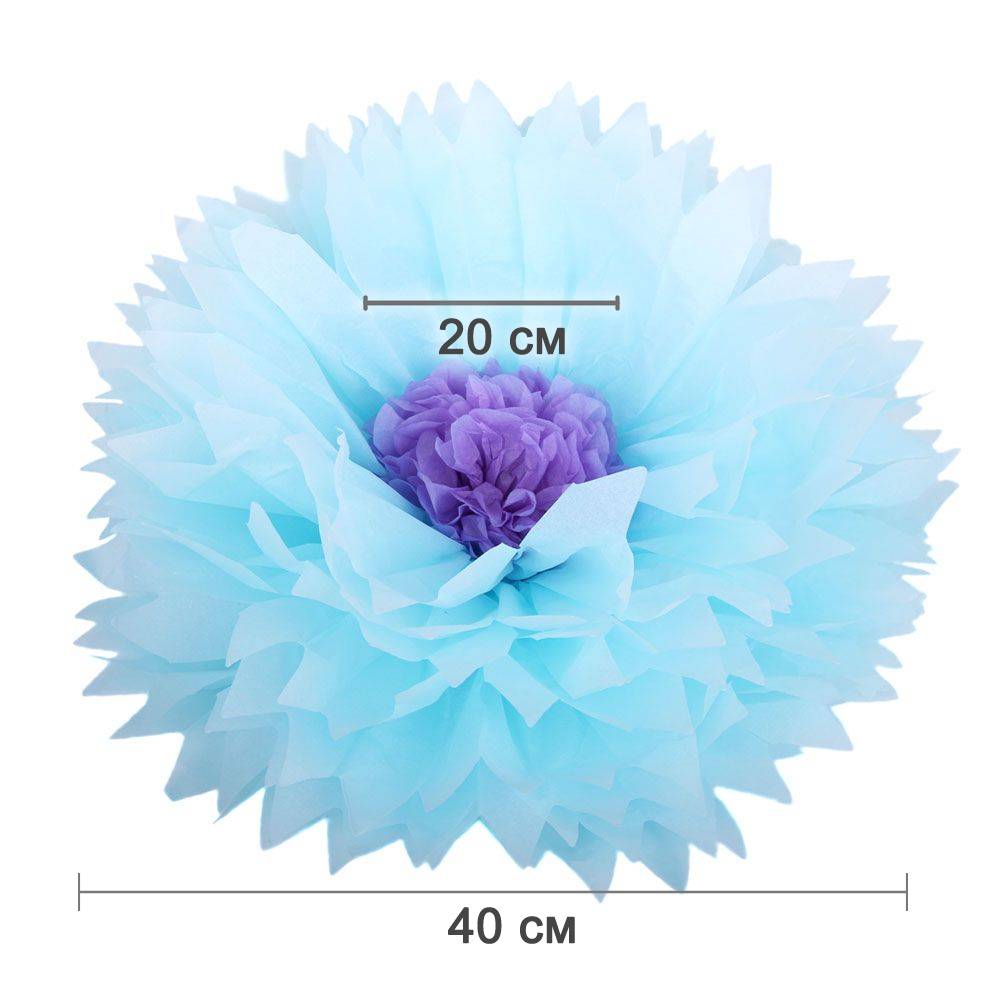 Бумажный цветок 40 см голубой+светло-сиреневый