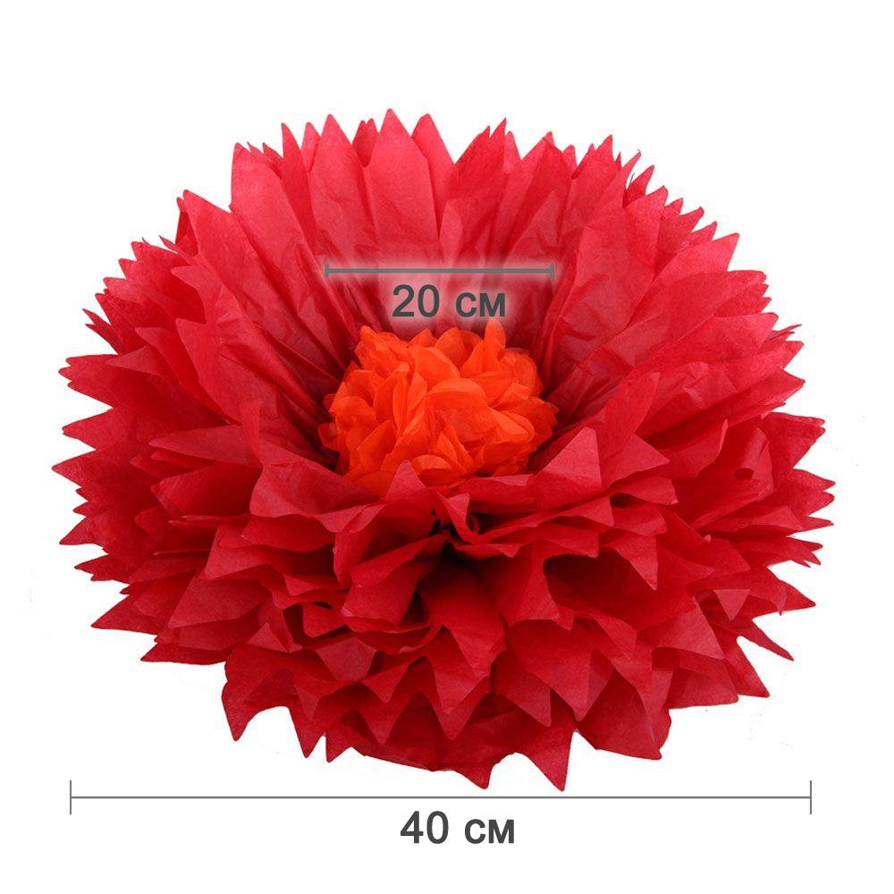 Бумажный цветок 40 см красный+оранжевый