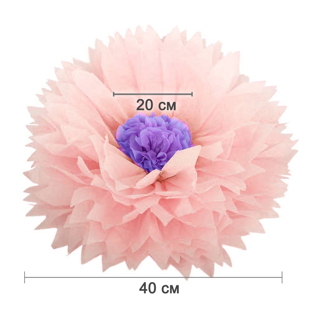 Бумажный цветок 40 см персиковый+светло-сиреневый