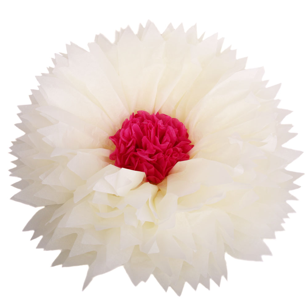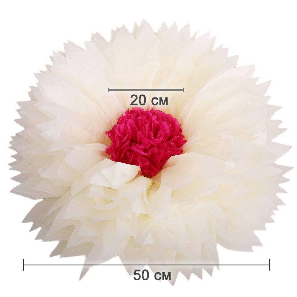 Бумажный цветок 50 см айвори+малиновый