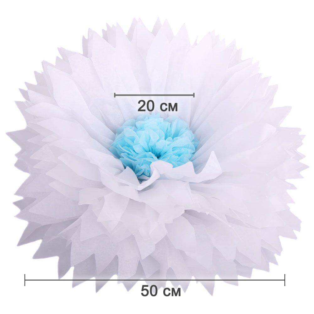 Бумажный цветок 50 см белый+голубой
