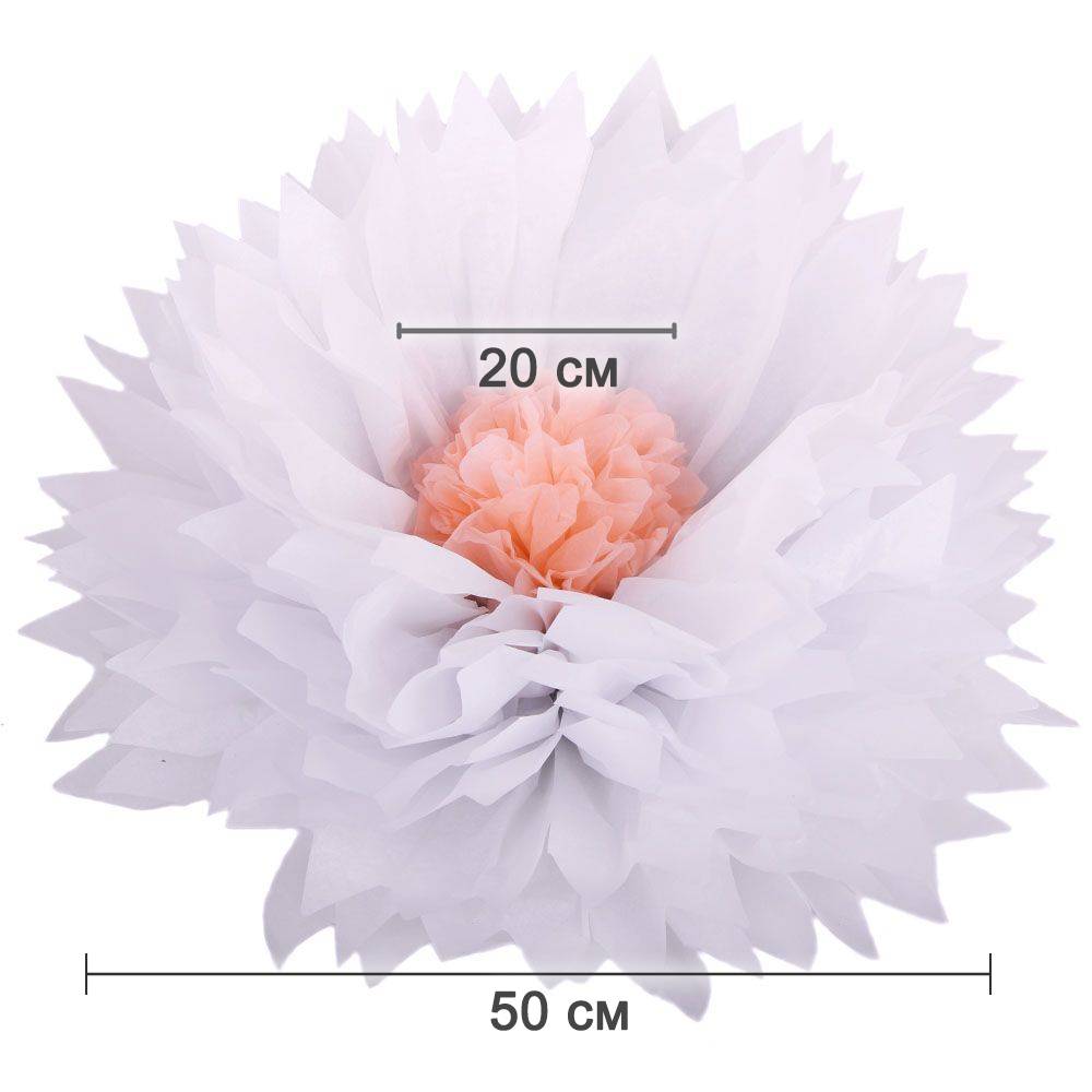 Бумажный цветок 50 см белый+персиковый
