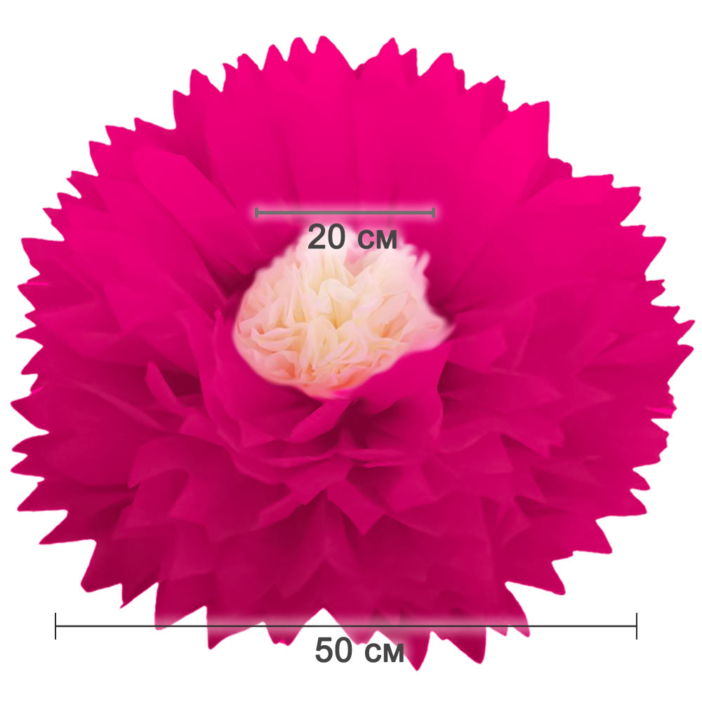 Бумажный цветок 50 см малиновый+айвори