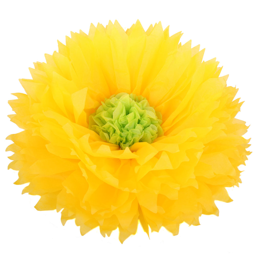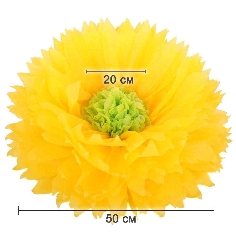 Бумажный цветок 50 см ярко-желтый+салатовый