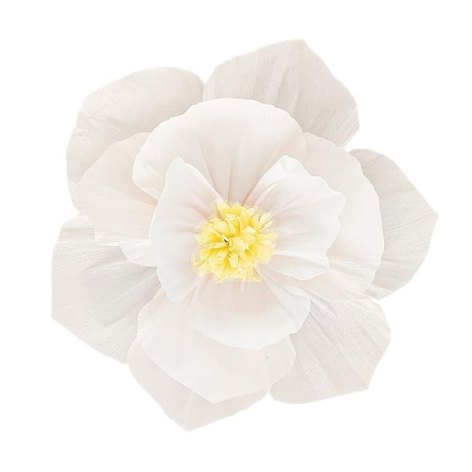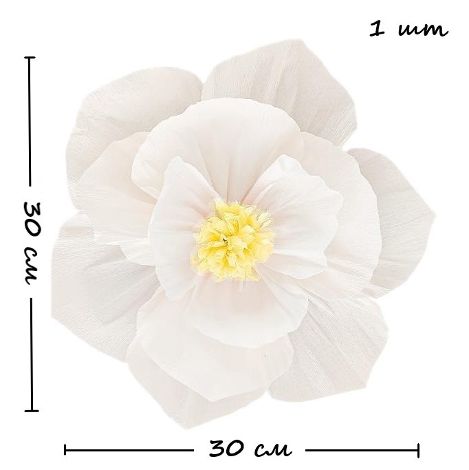 Бумажный цветок гофрированный 30 см белый+желтый