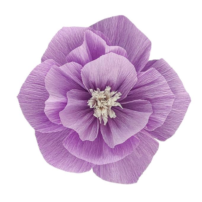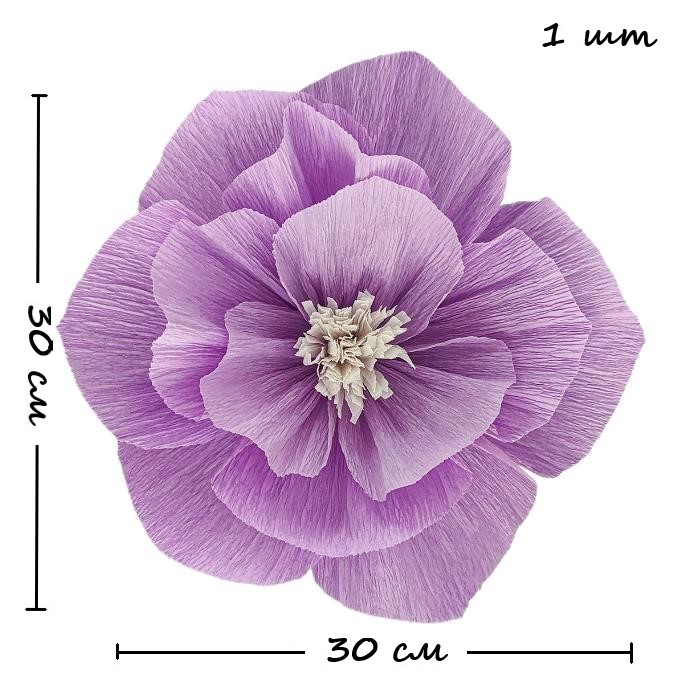 Бумажный цветок гофрированный 30 см сиреневый+белый