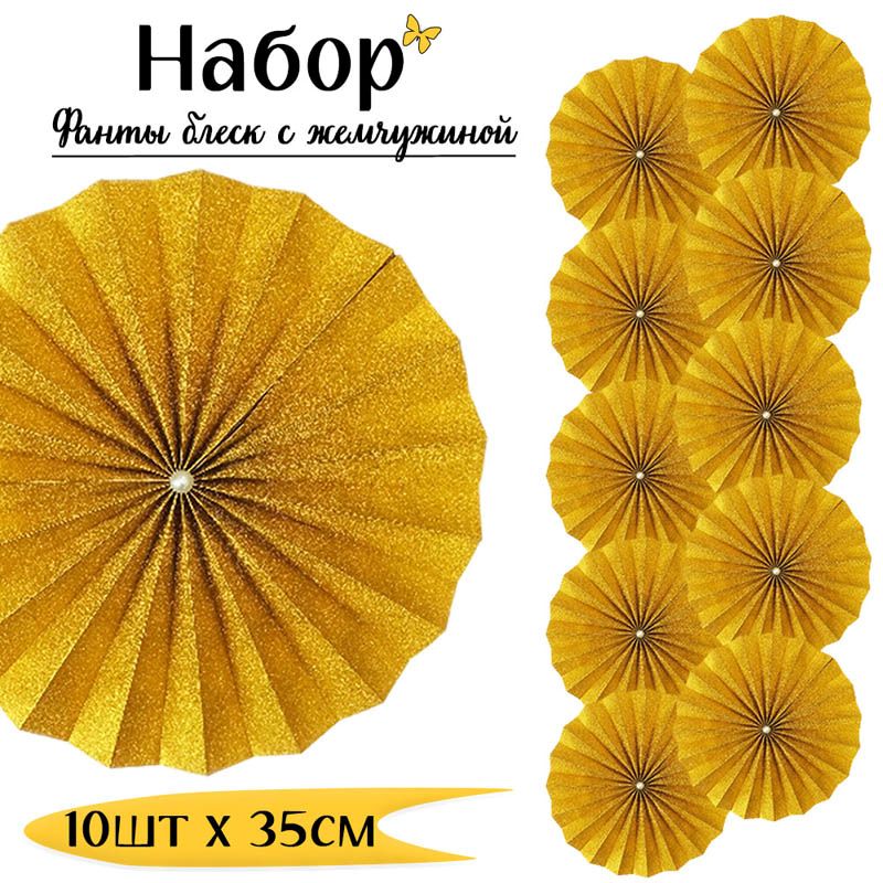 Фанты блеск с жемчужиной НАБОР 10шт х 35см, золото