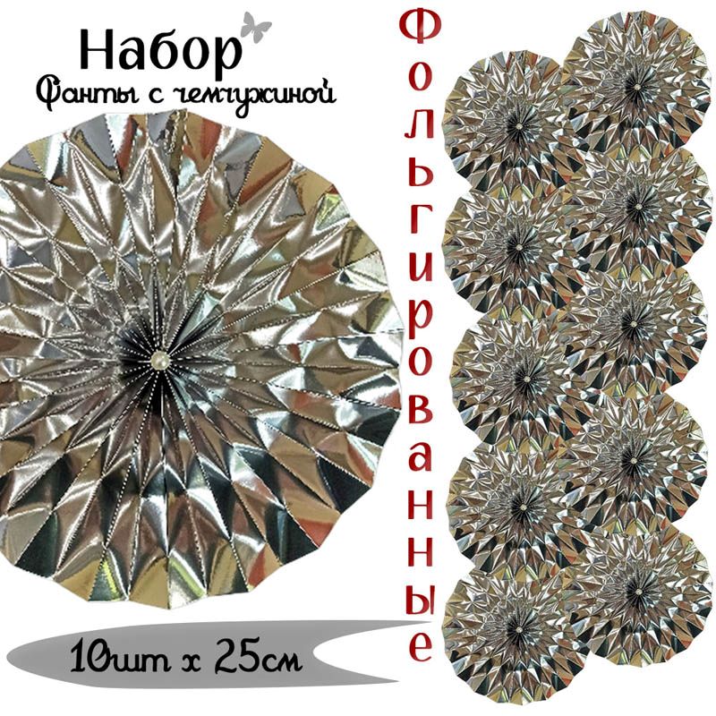 Фанты фольгированные с жемчужиной НАБОР 10шт х 25см, серебро
