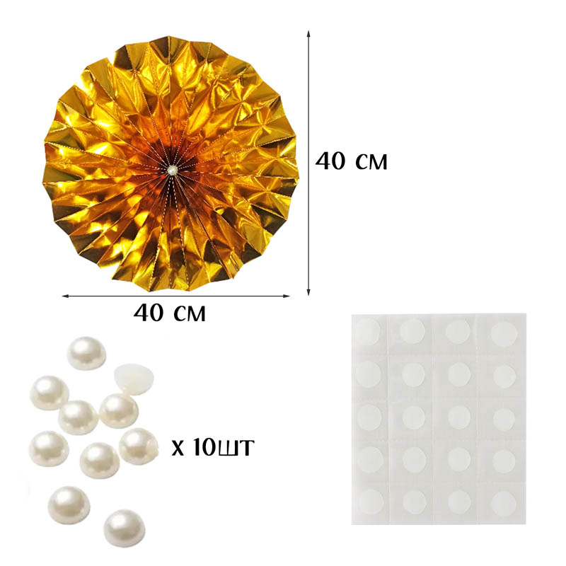 Фанты фольгированные с жемчужиной НАБОР 10шт х 40см, золото