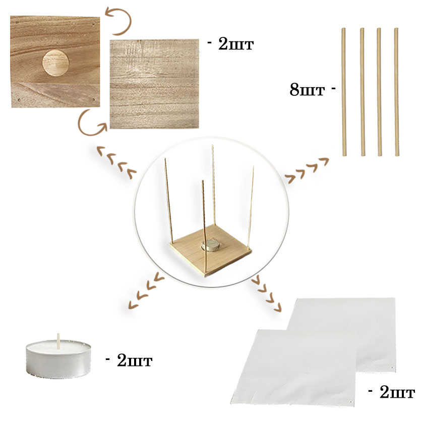 1. Деревянная основа — обеспечивает плавучесть и устойчивость фонарика.