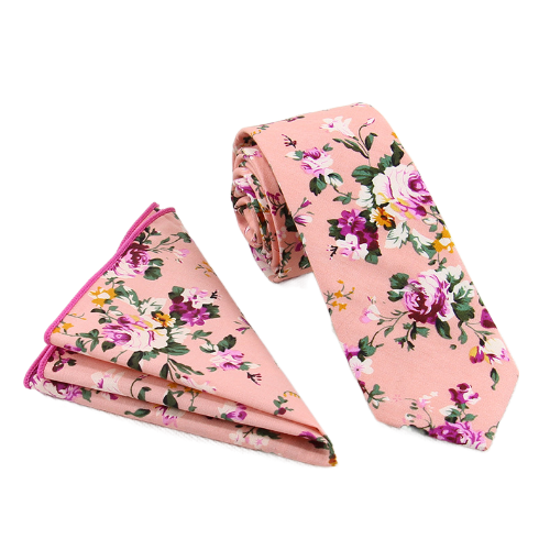 В комплект входит галстук 6х145 см и нагрудный платок 24х24 см изготовлены из хлопка, имеют цветочный принт.
