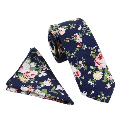 В комплект входит галстук 6х145 см и нагрудный платок 24х24 см  изготовлены из хлопка, имеют цветочный принт.