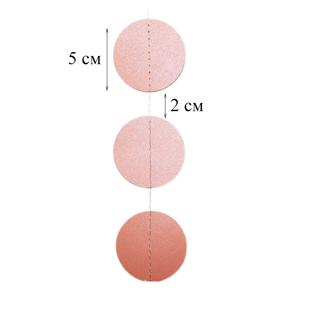 Гирлянда "Кружочки" бумажные 5 см х 4,5 м, Персиковый