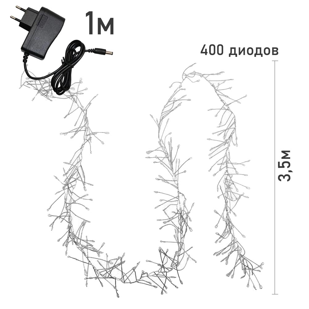 Гирлянда LED Роса-Мишура от сети, 3,5м х 400 диодов, синий