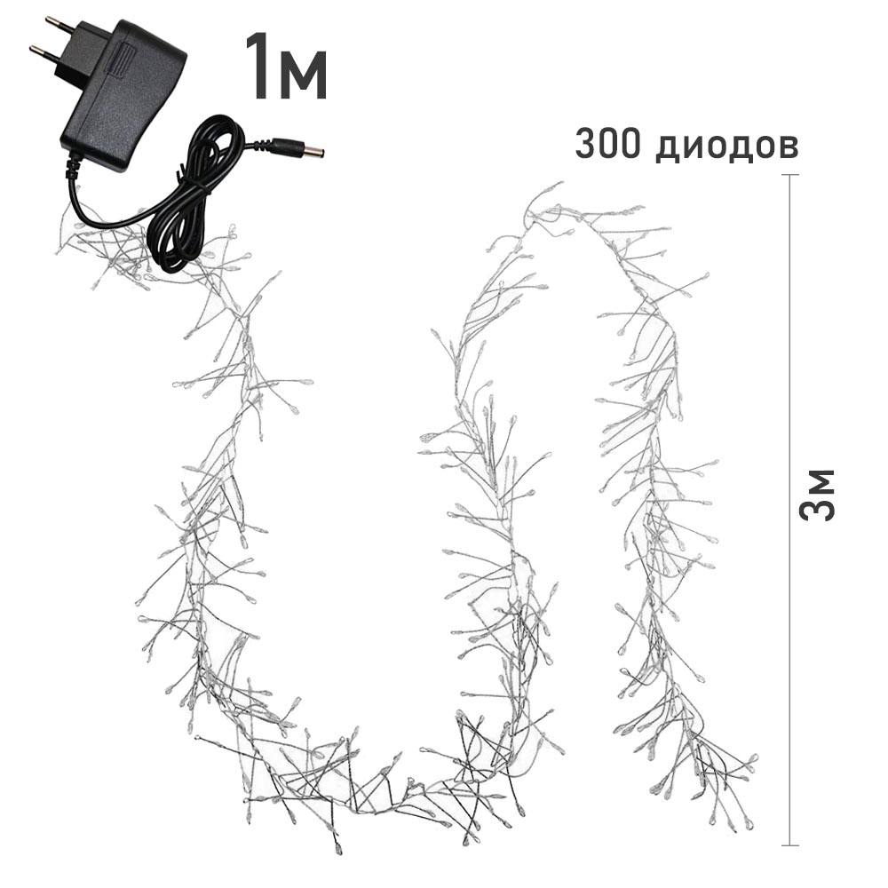 Гирлянда LED Роса-Мишура от сети, 3м х 300 диодов, разноцветный