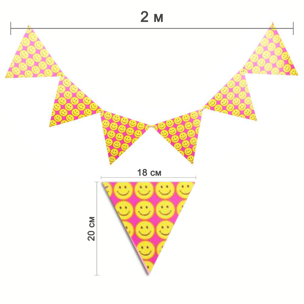 Гирлянда на веревке Смайлы 2м 18х20см, желтый