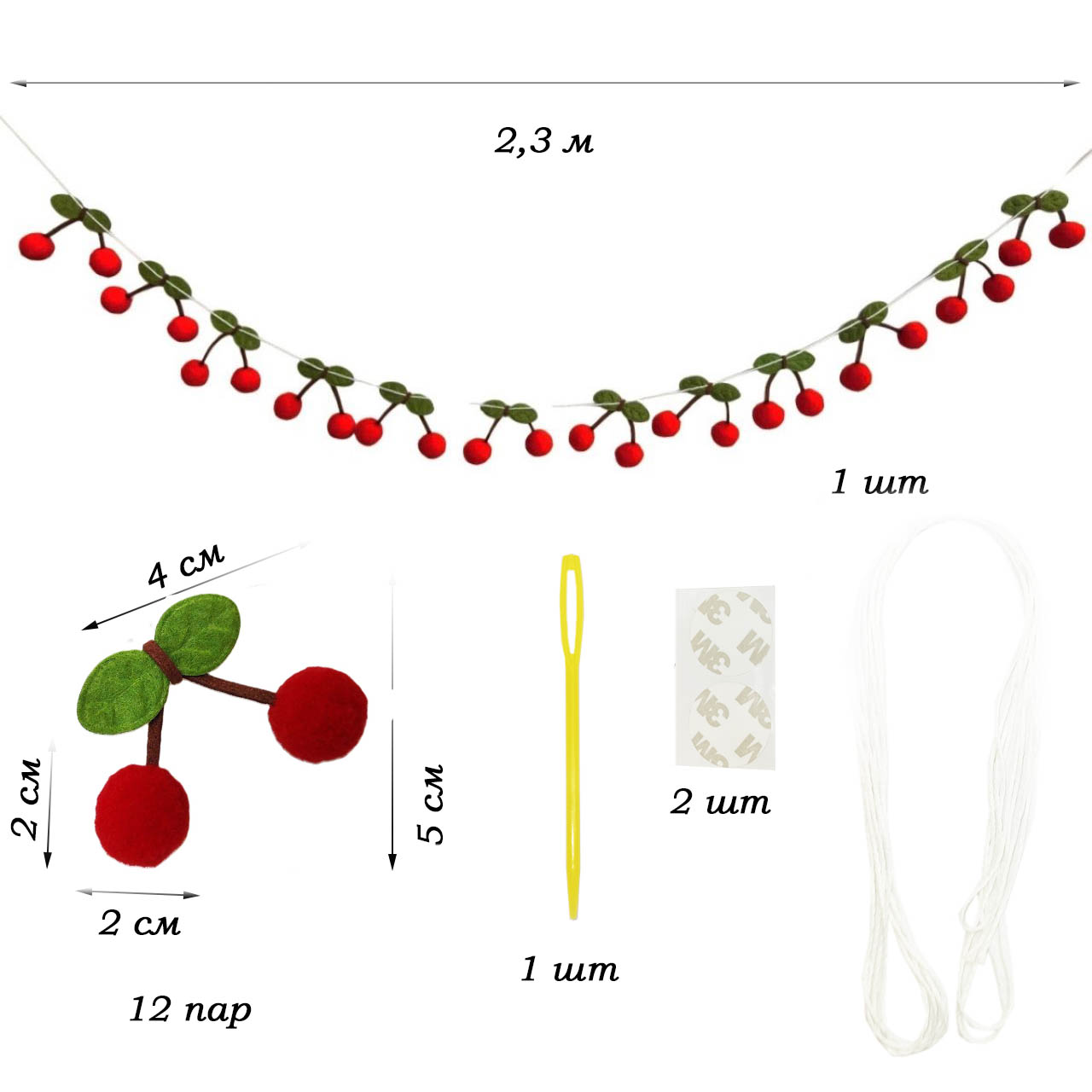 Количество вишенок на гирлянде 24 шт.,