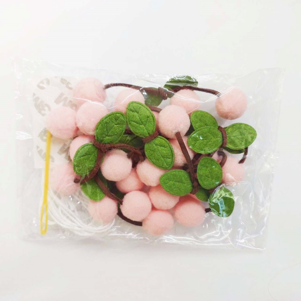 Гирлянда на веревке "Вишенки" 2 см х 24 шт х 2,3 м, "св.розовый" - 1 шт.