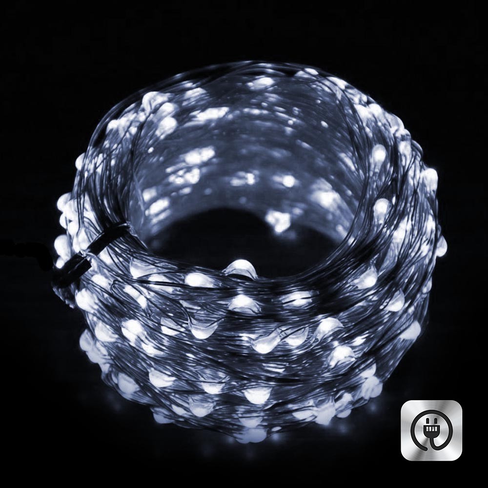 Нить "Роса" медь, 20 м х 200 диодов, от сети,холодный белый