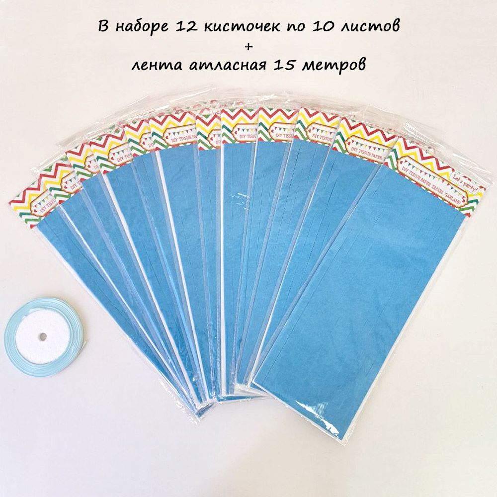 Гирлянда тассел 12 кисточек по 10 листов, синий