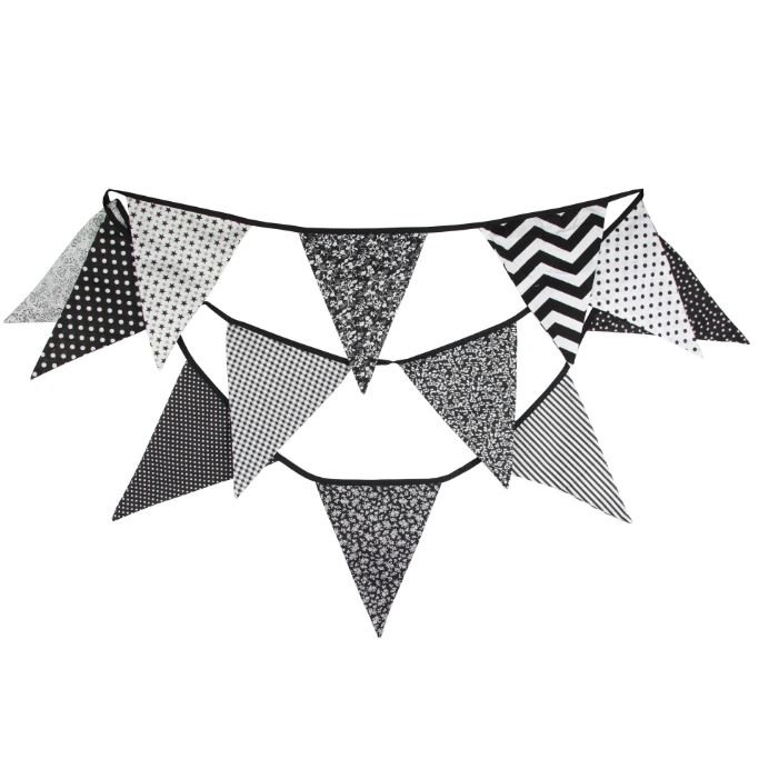 Гирлянда состоит из 12 флажков, расстояние между флажками 6 см, общая длина составляет 4 м.