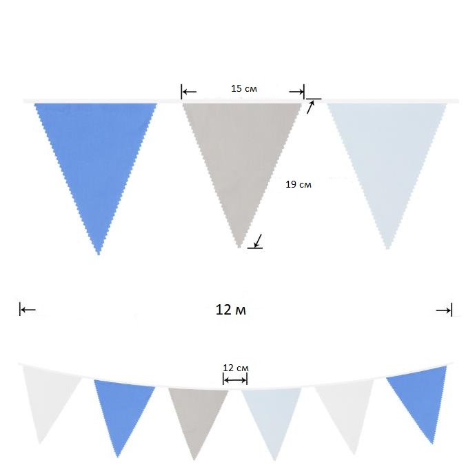 Гирлянда состоит из 42 флажков, из них длина вымпела 9 м, а длина лямок с обеих сторон 45-50 см