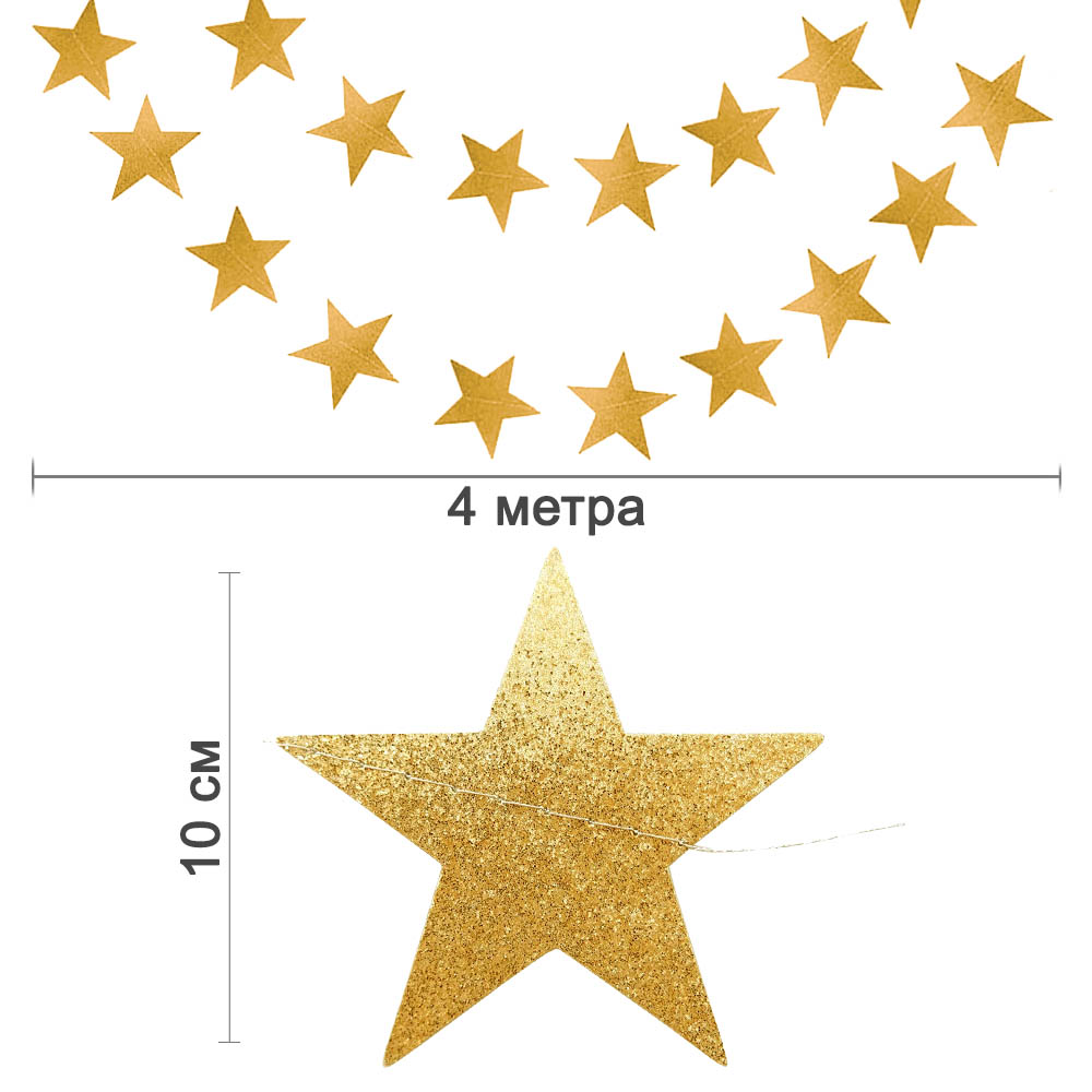 Гирлянда "Звезды" блеск 10 см х 4 м, золото