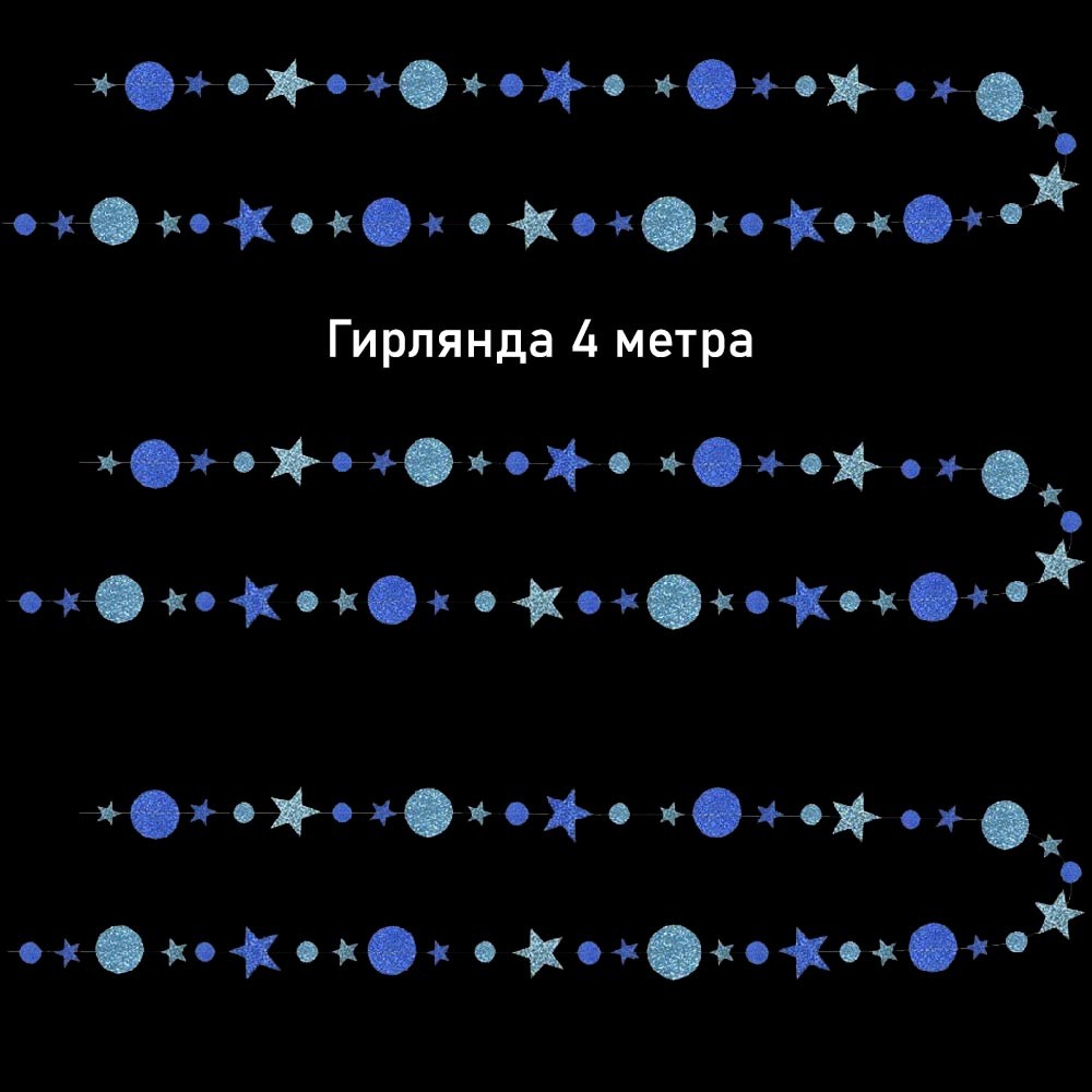 Гирлянда Звезды/Кружочки 4 м блеск Голубой/Синий