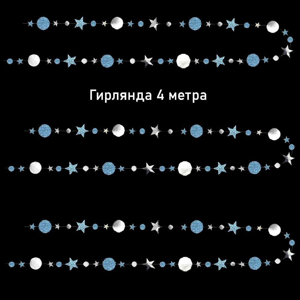 Гирлянда Звезды/Кружочки 4 м металлик Серебро/ блеск Голубой