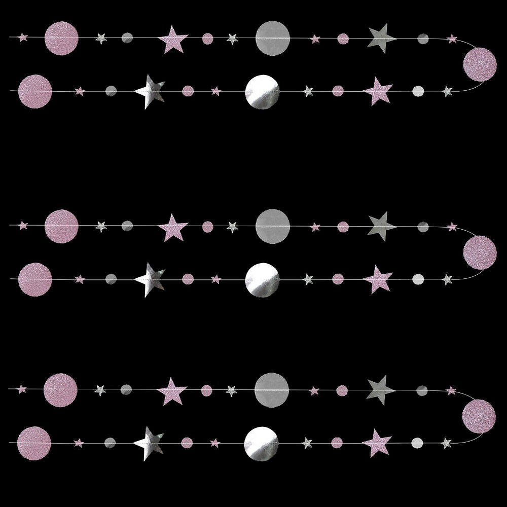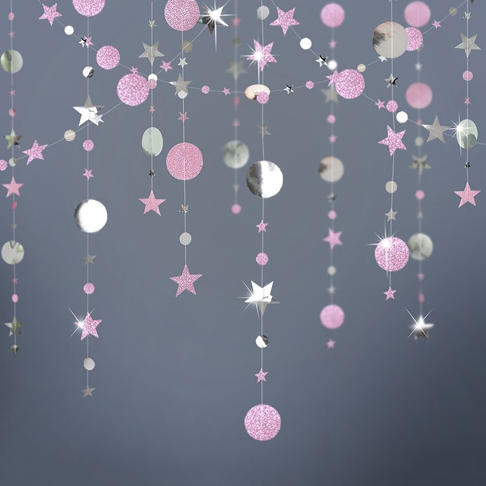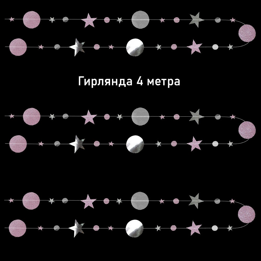 Гирлянда Звезды/Кружочки 4 м металлик Серебро/ блеск Розовый
