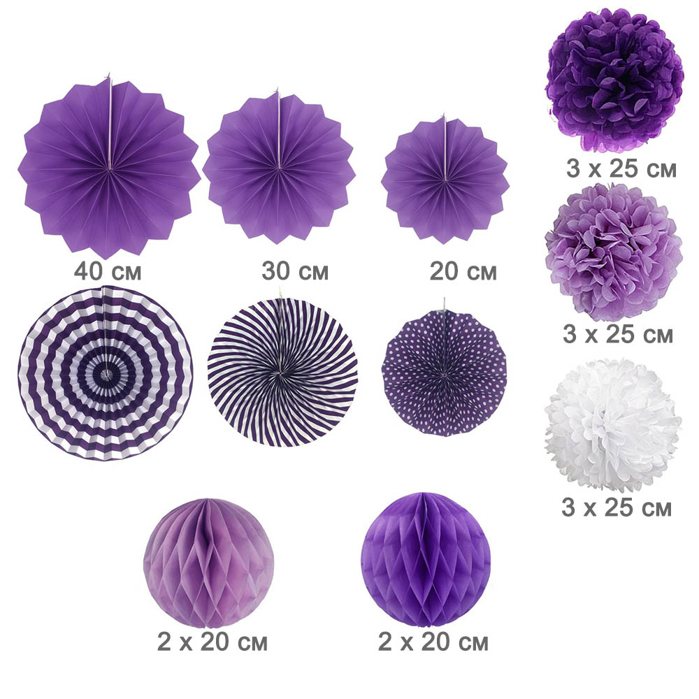 Готовый комплект из бумажных фантов, помпонов и шаров сот, можно применять в качестве декорирования фотозоны к празднику. Подвесные фонарики и шары соты, раскрываются одним движением. Бумажные помпоны необходимо расправить.  Готовый набор доставляется в сложенном виде. Можно использовать несколько раз.
