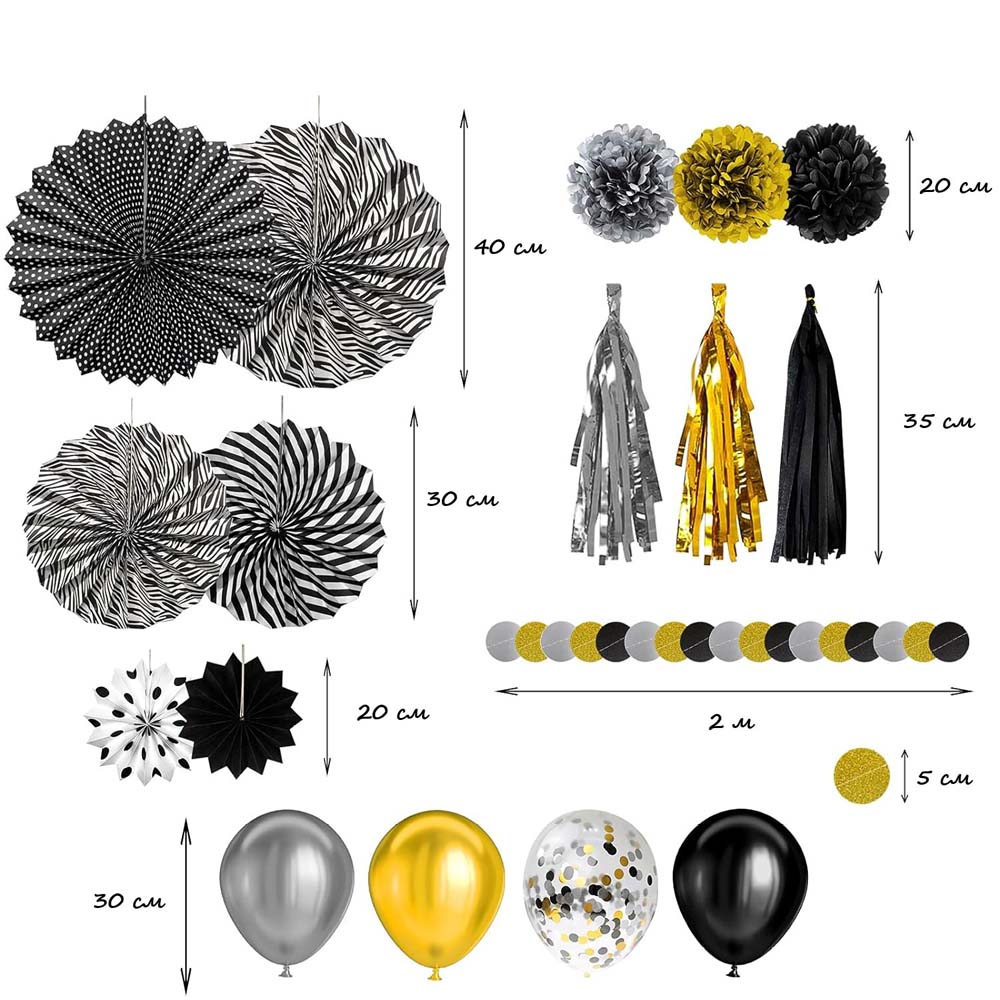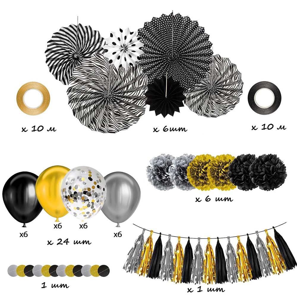 Набор из бумажных украшений, можно применять в качестве декорирования фотозоны к празднику, и праздничного стола. Можно использовать несколько раз.