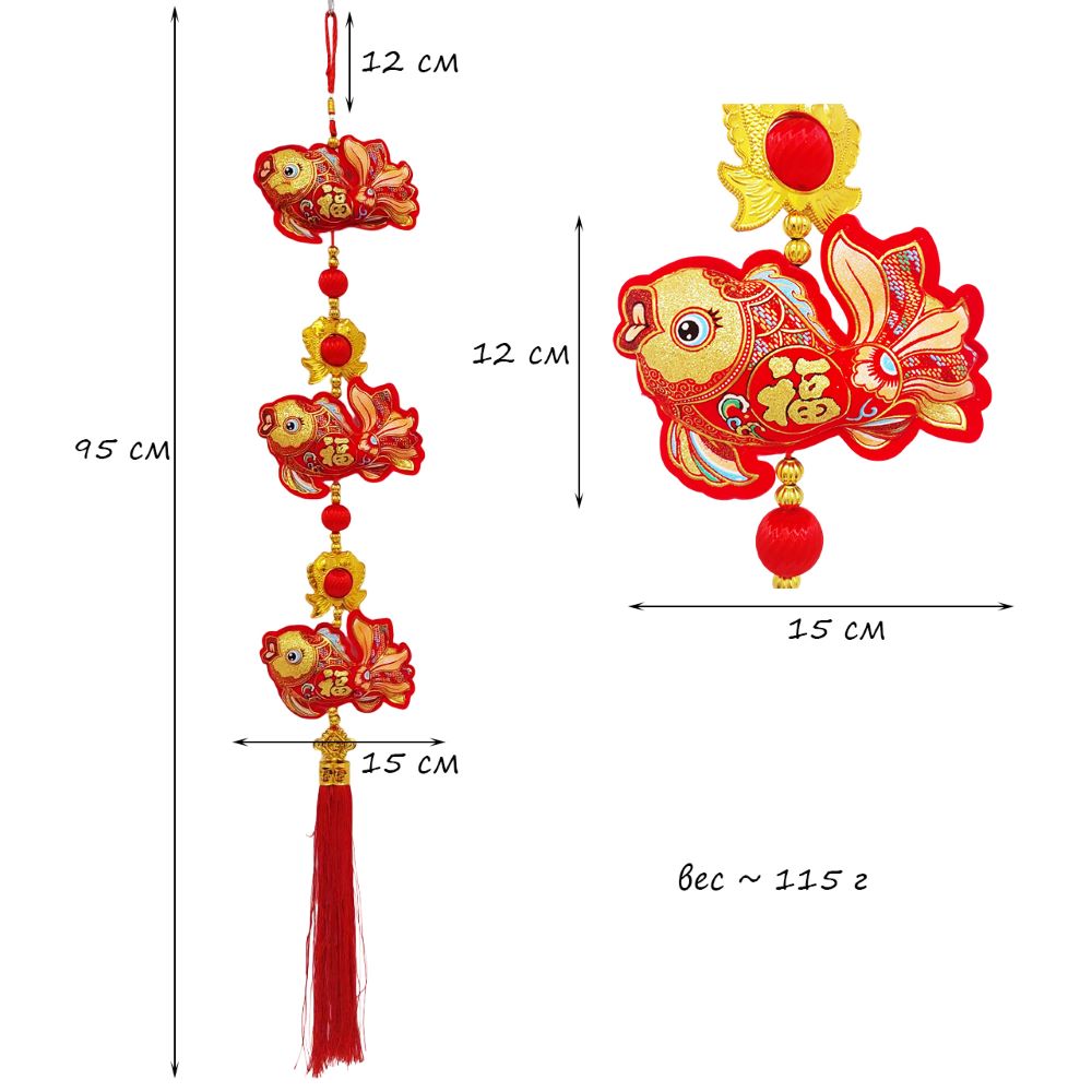 Китайская подвеска 15х95см, Рыбки - 1 шт