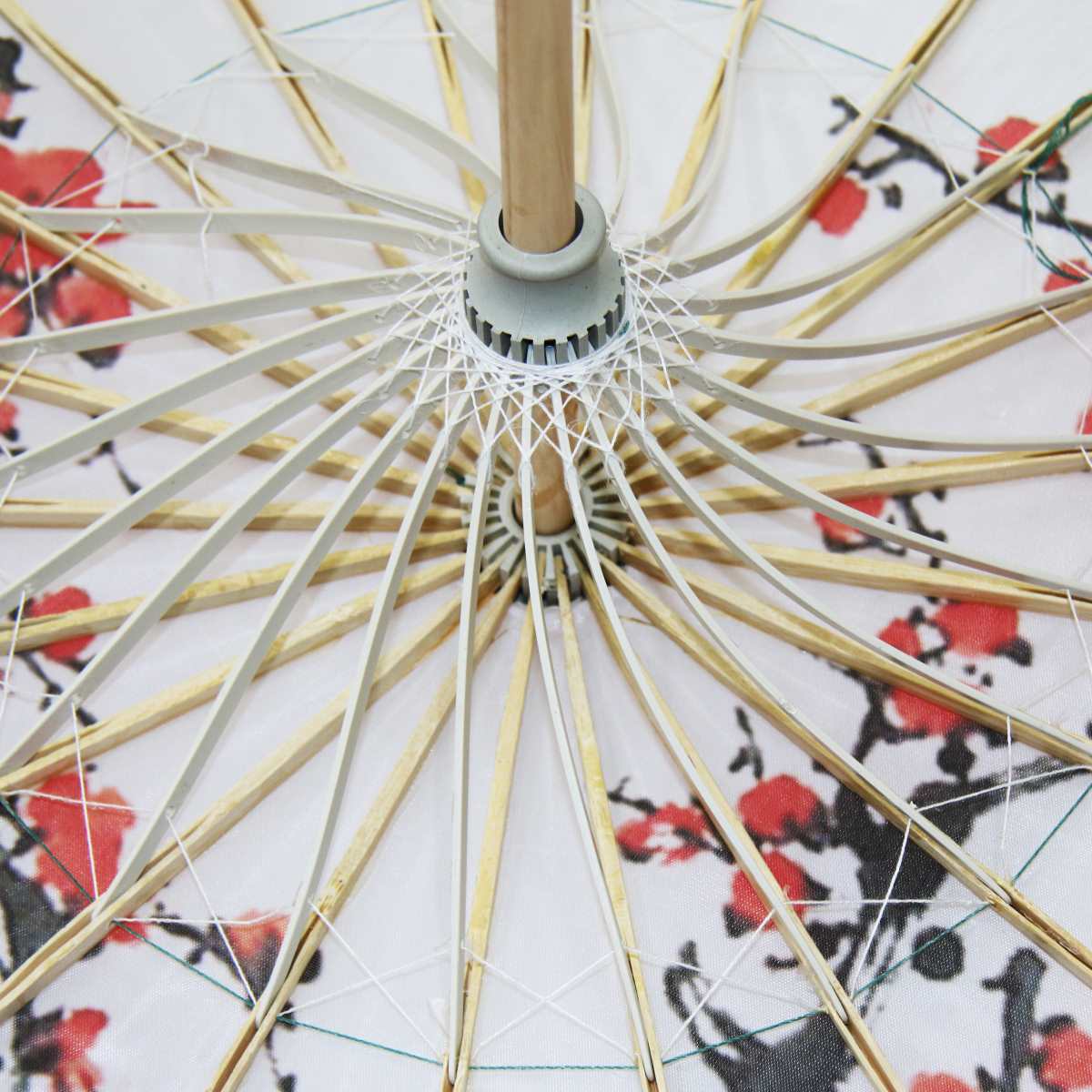 Каркас зонтика выполнен из дерева,купол зонта изготовлен из водоотталкивающего материала,который не пропускает воду.