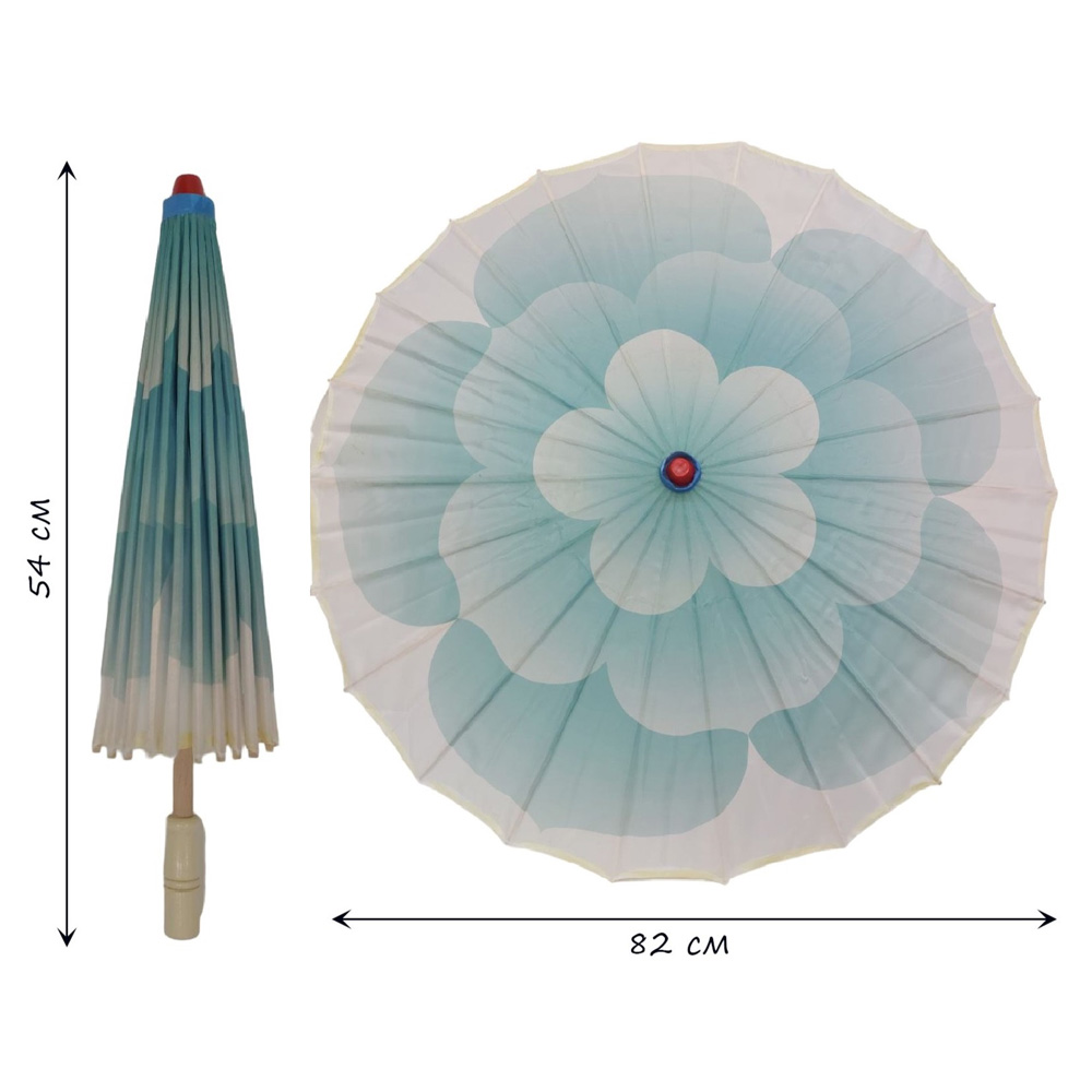 Китайские тканевые зонтики Цветок 82х54см, голубой