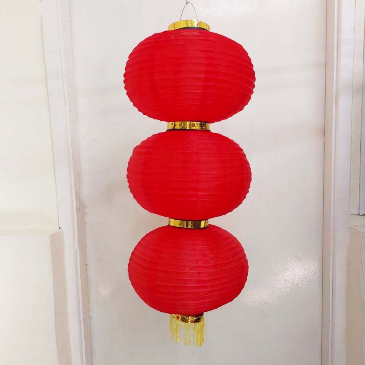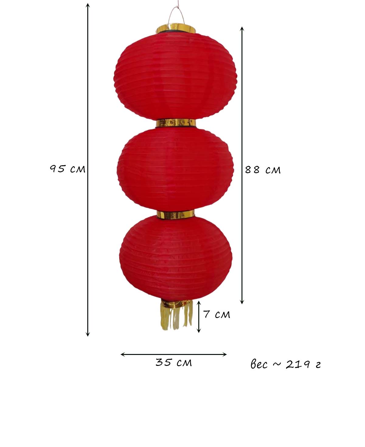 Круглый китайский фонарь состоит из трех ярусов диаметром 35 см каждый.