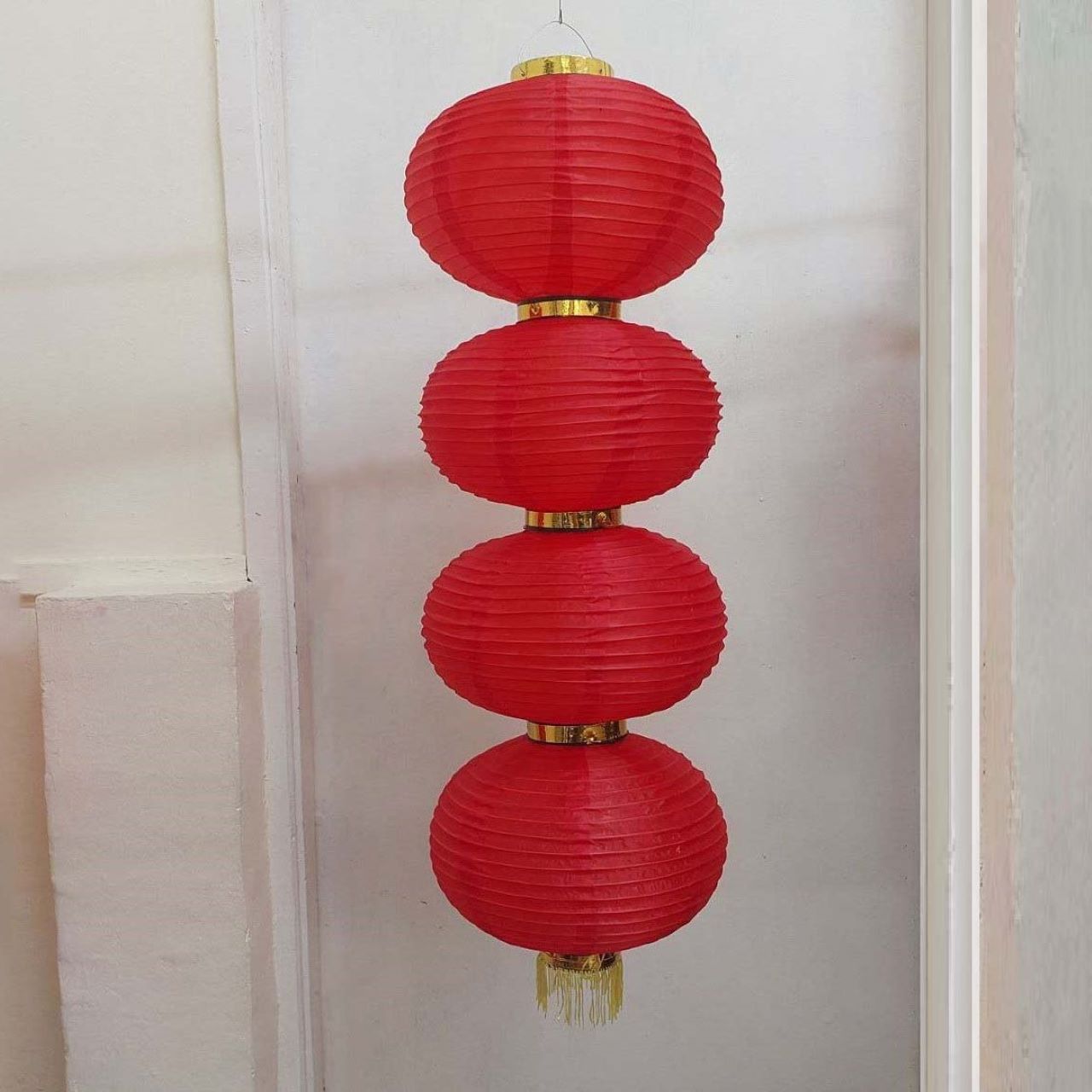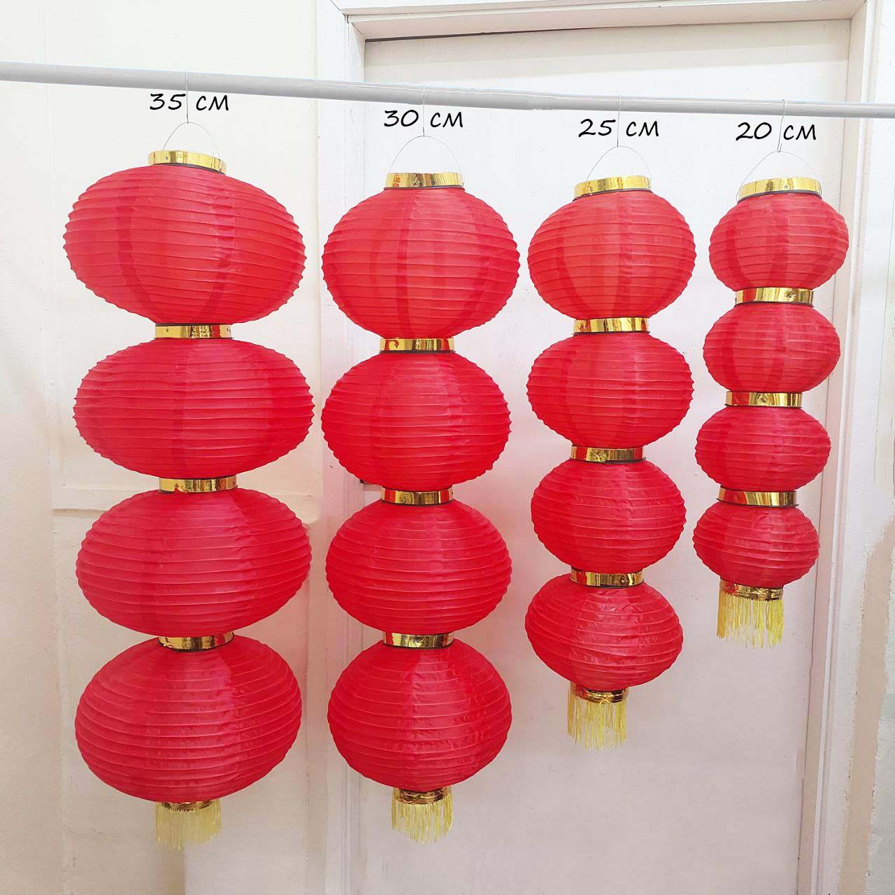 Круглый китайский фонарь состоит из четырех ярусов диаметром 35 см каждый.