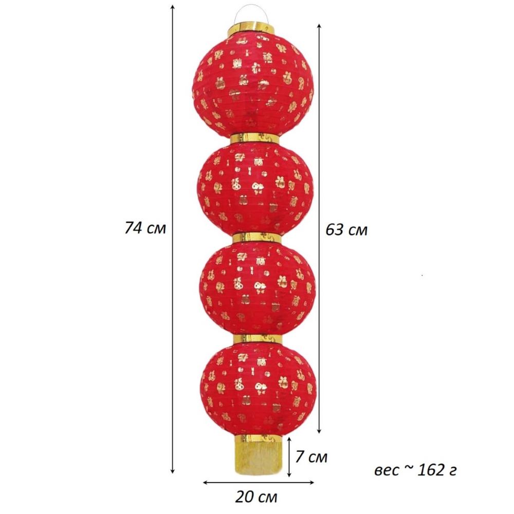 Китайский фонарь Круглый с надписью, 4 яруса 20см