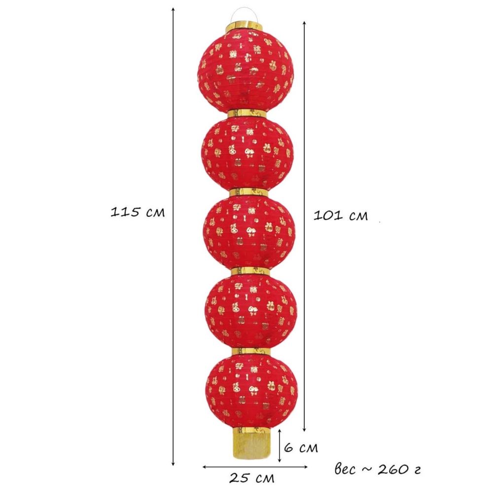 Китайский фонарь Круглый с надписью, 5 ярусов 25см