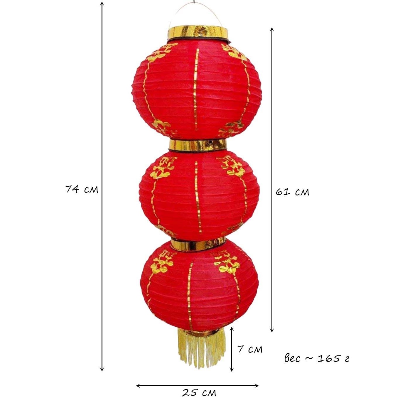 Китайский фонарь Круглый с рисунком, 3 яруса 25см
