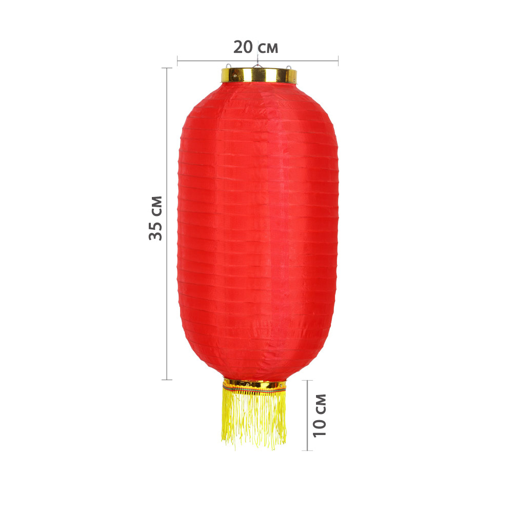 Китайский фонарь Цилиндр с бахромой 20х35 см, красный