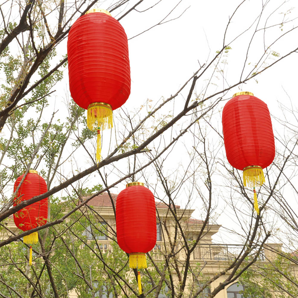 Китайский фонарь Цилиндр с бахромой 25х45 см, красный